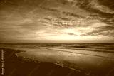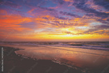 Seascape in the early morning. Sunrise over the sea. Sandy beach with the beautiful dramatic sky during sunrise. Nature landscape