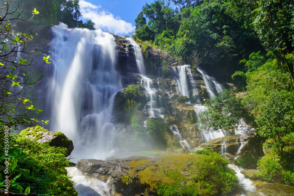 Wachirathan Waterfall in Doi Inthanon National Park, one of largest and famous cascade in country, Chiang Mai, Thailand