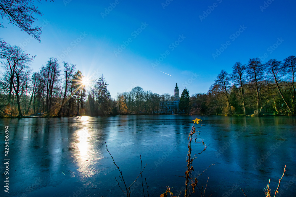 frozen lake in the forest during a sunny winter day (Wandlitz, Barnim, Brandenburg, Germany)