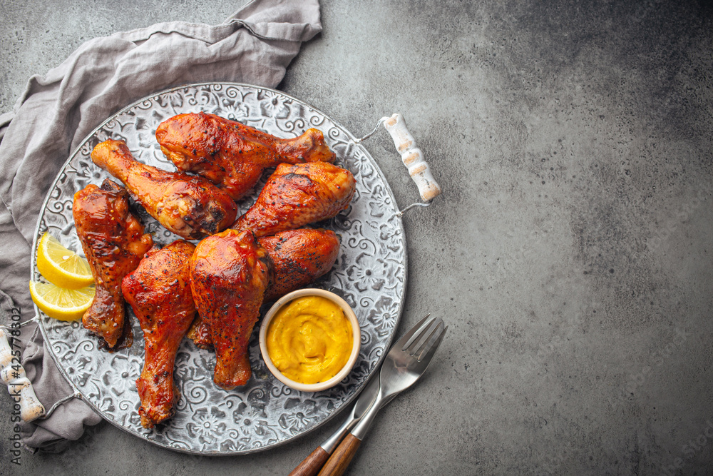 Traditional vegetarian Indian Punjabi food Palak Paneer with spinach and cheese in vintage metal bowl with spoon on rustic grey concrete background table, angle view