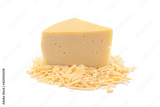 Solid yellow gouda cheese, close-up, isolated on a white background.selective focus.