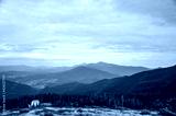 View from the mountain to the ski resort Dragobrat. Hoverla and petros mountines on background. Carpathian mountains, Ukraine
