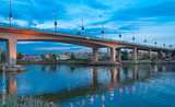 Magic view of Cambie bridge at night, Downtown of Vancouver, Canada.