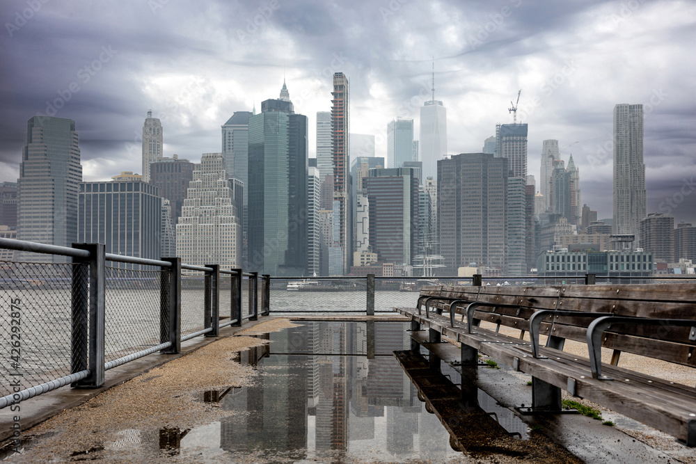 Manhattan skyscrapers, New York city skyline, cloudy spring day