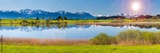 beautiful rural landscape in Bavaria with mountain range and meadow at springtime