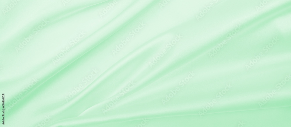 Smooth elegant green silk or satin luxury cloth texture as abstract background. Luxurious background design