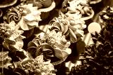 Close up of freshly baked cakes and cupcakes in a row