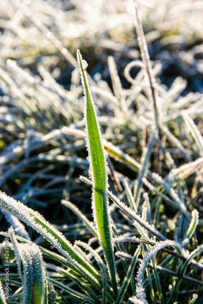 frozen grass in the morning
