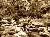 Beautiful stream with large boulders in lush tropical jungle - Luzon, Philippines