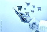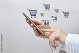 A person with a phone makes purchases online. Online shopping