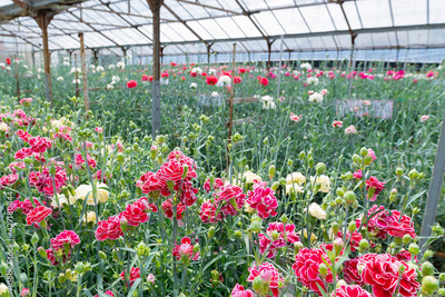 ビニールハウスのカーネーション畑