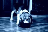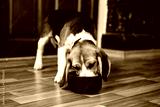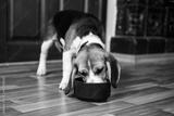 Beagle Feeding. Beagle puppy eating dog dry food from a bowl at home. Beagle Eat, Adult and Puppy Feeding Chart