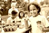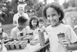 Kinder lernen in Gärtnerei über Pflanzen Aussaat