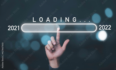 Hand touching to virtual infographic loading for change 2021 to 2022 , Countdown and preparation merry Christmas and happy new year concept.