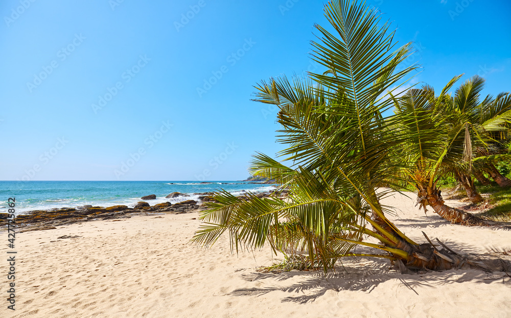 Palm trees on a tropical beach, summer vacation concept, Sri Lanka.