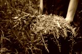 Close-up of hands collecting flowers of Ivan-tea. In the hands of a bouquet of pink flowers Willow-grass. Fireweed.