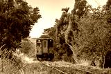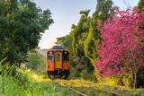 Train with cherry blossom at Neiwan railway in Hsinchu, Taiwan.