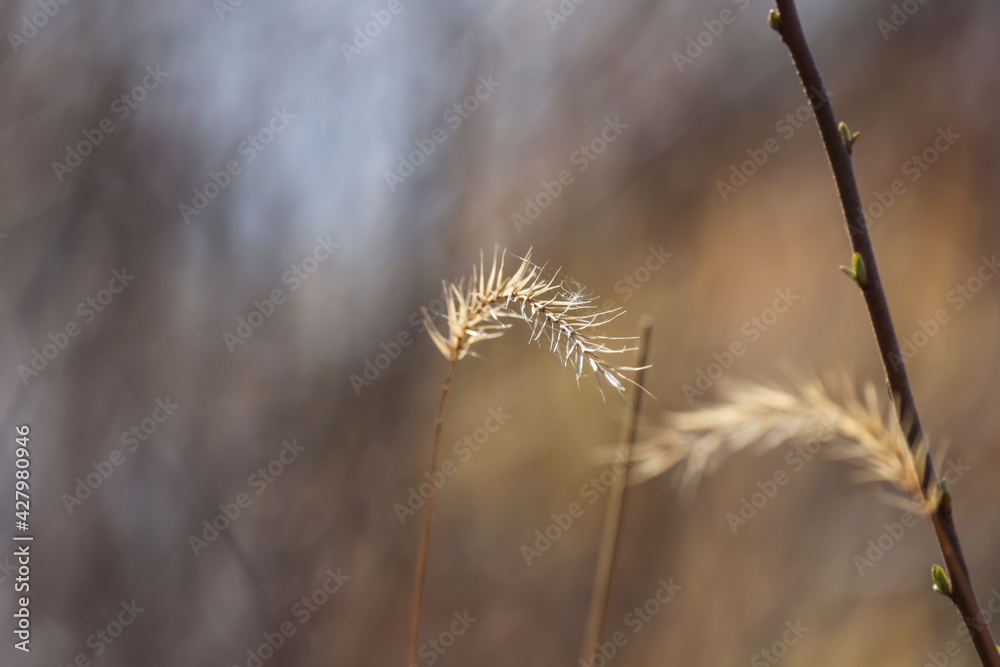 Close up shot of feather grass in the wood lands