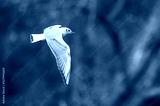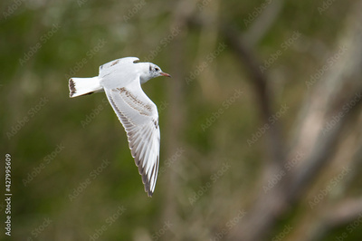 Seagull in flight, hunting for mosquitoes