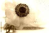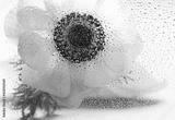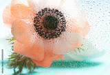 Orange color anemone flower behind wet glass. Floral concept macro background