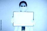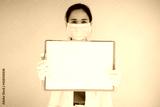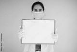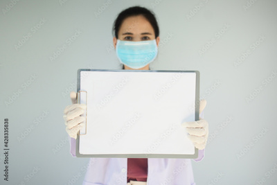 Doctor wear surgical mask hold clipboard on white background ,Doctor use medical mask protect coronavirus covid19