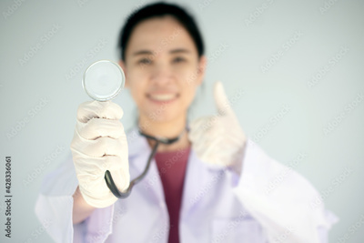 Doctor women holding stethoscope equipment test heart concept health care ,world heart day , life insurance