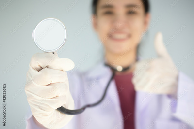 Doctor women holding stethoscope equipment test heart concept health care ,world heart day , life insurance