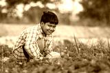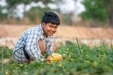 A boy with a melon in the field Quality selection for consumers, Kid smile with melon in farm