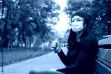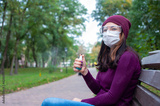 COVID-19 Concept. Woman in medical mask and goggles washing hands with alcohol gel sanitizer. Protection and prevention against coronavirus.