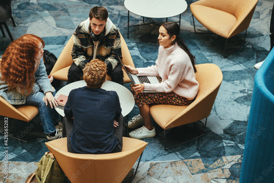 Students doing group study in college campus
