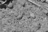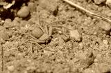 Closeup picture of the six-eyed sand spider of the genus Hexophthalma (maybe H. hahni or H. goanikontesensis) and former Sicarius (family Sicariidae), photographed in the Namib desert near Swakopmund.