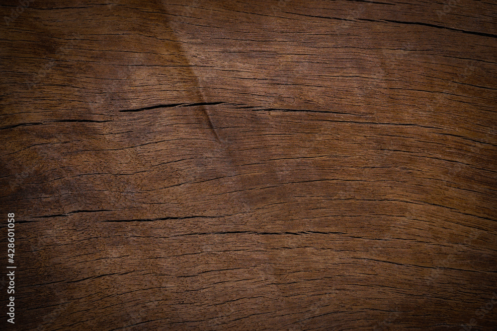 Old wood texture background with natural cracks. Dark brown wood plank is used for background.