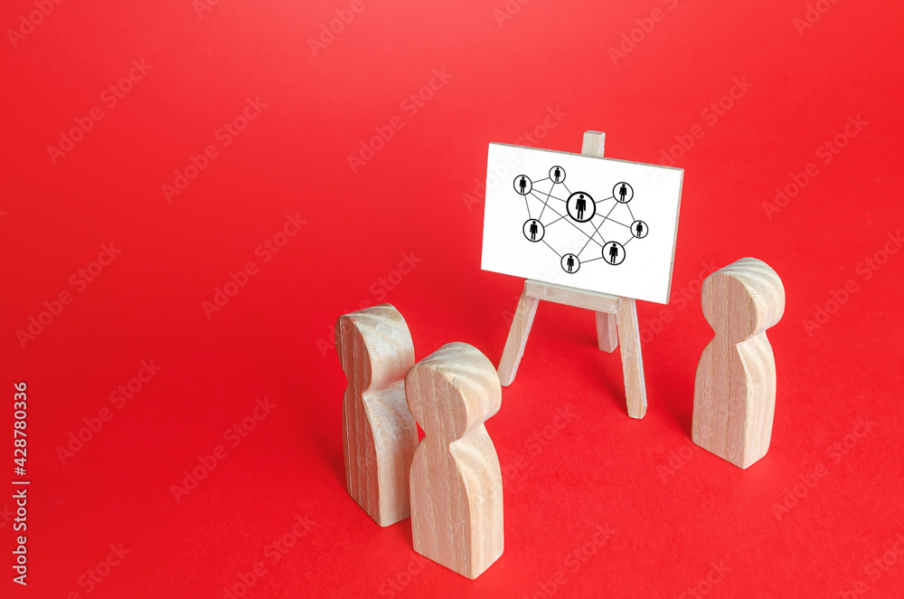Leader presents the hierarchical structure of the company to the employees. Distribution responsibilities. Flexible business structure. Staff expansion, recruiting. Interaction and conflict resolution