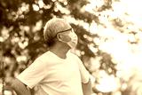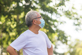 Old man wear surgical mask protect coronavirus covid19 at outdoor city park lifestyle new normal ,Retired man exercising in the morning