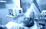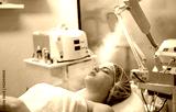 The procedure of steaming the skin of the face of young woman before cleaning the skin in a beauty salon.