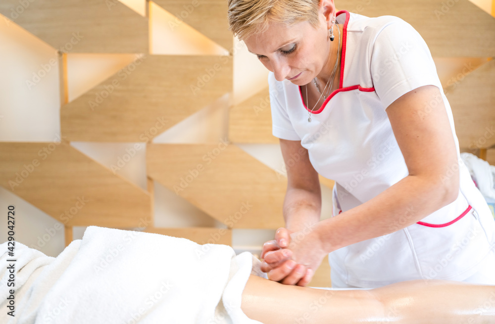 Masseur doing anticellulite massage to young woman in spa salon. Concept of care and beauty.
