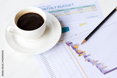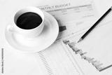 Office Desk Table,Worktable top view,working table with a cup of black coffee