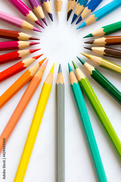 pencil,Multicolored pencil,Idea area,Idea circle,Idea point,Circle pencils represent creativity.