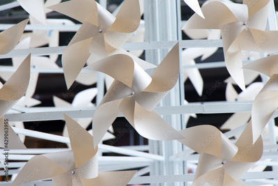 Many white pinwheels on a white steel frame,Pinwheels