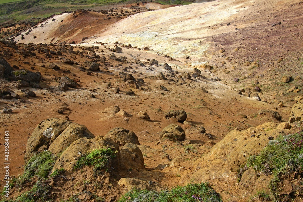 The Seltún Colorful Geothermal Area near Krýsuvík on Reykjanes Peninsula. Iceland.