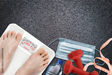 Woman on Bathroom Scale to Stay Fit During COVID-19 Pandemic Lockdown