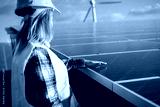 Young woman working at alternative energy farm - Focus on architect hand over solar panel
