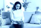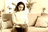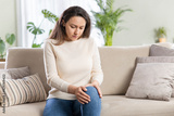 Young woman suffering from pain in knee at home
