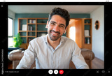 Business man on a work video call from home.