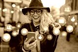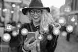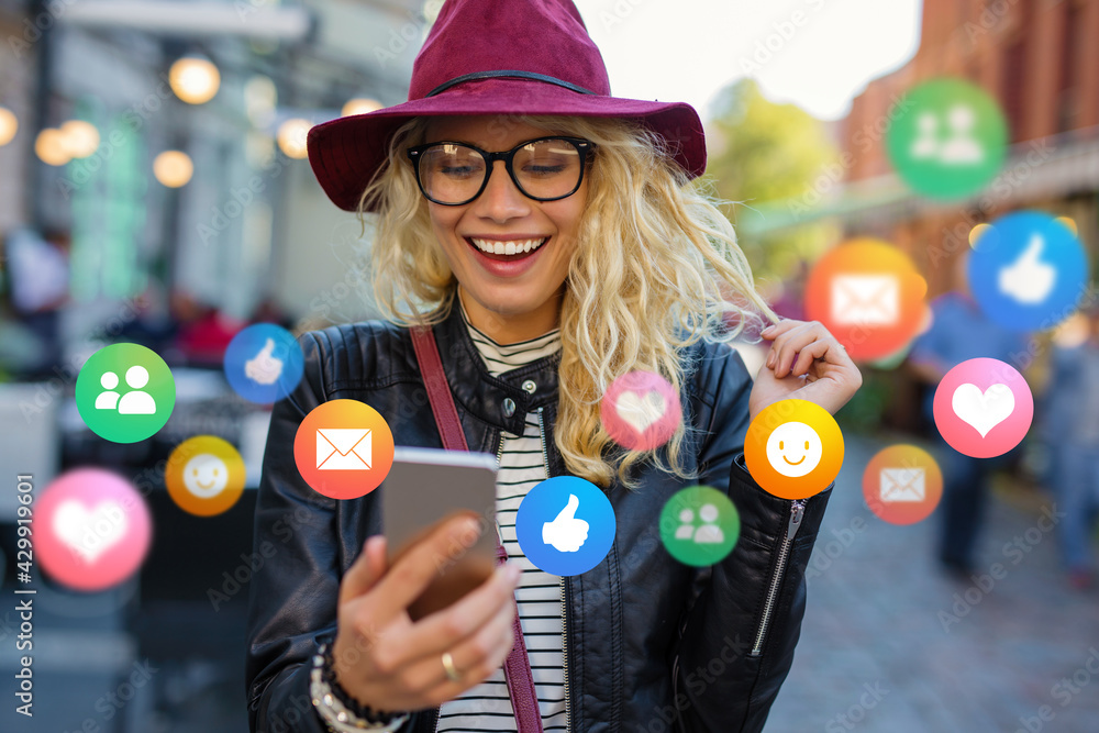 Young woman with mobile phone outdoors, concept of everyday technology usage