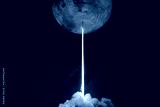 Rocket with blast and smoke takes off to the red planet mars mars, concept. Spacecraft lift off to explore other planets. Rocket launch