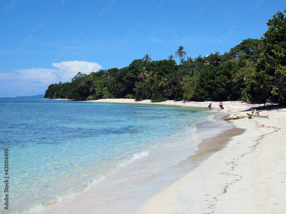Caribbean white sand beach with lush vegetation on a wild tropical island, Bocas del Toro, Panama, Central America