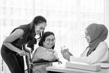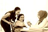 Senior woman patient with relative daughter having consultation with doctor in office clinic hospital, explaining about medicine
