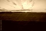 Gravel road that runs through the countryside at sunset .This photo can be used as a backplate for a 3d rendering