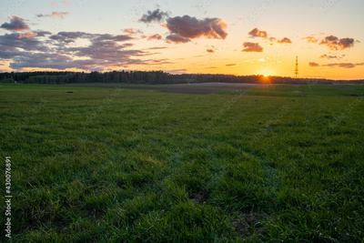sunset over the green meadow